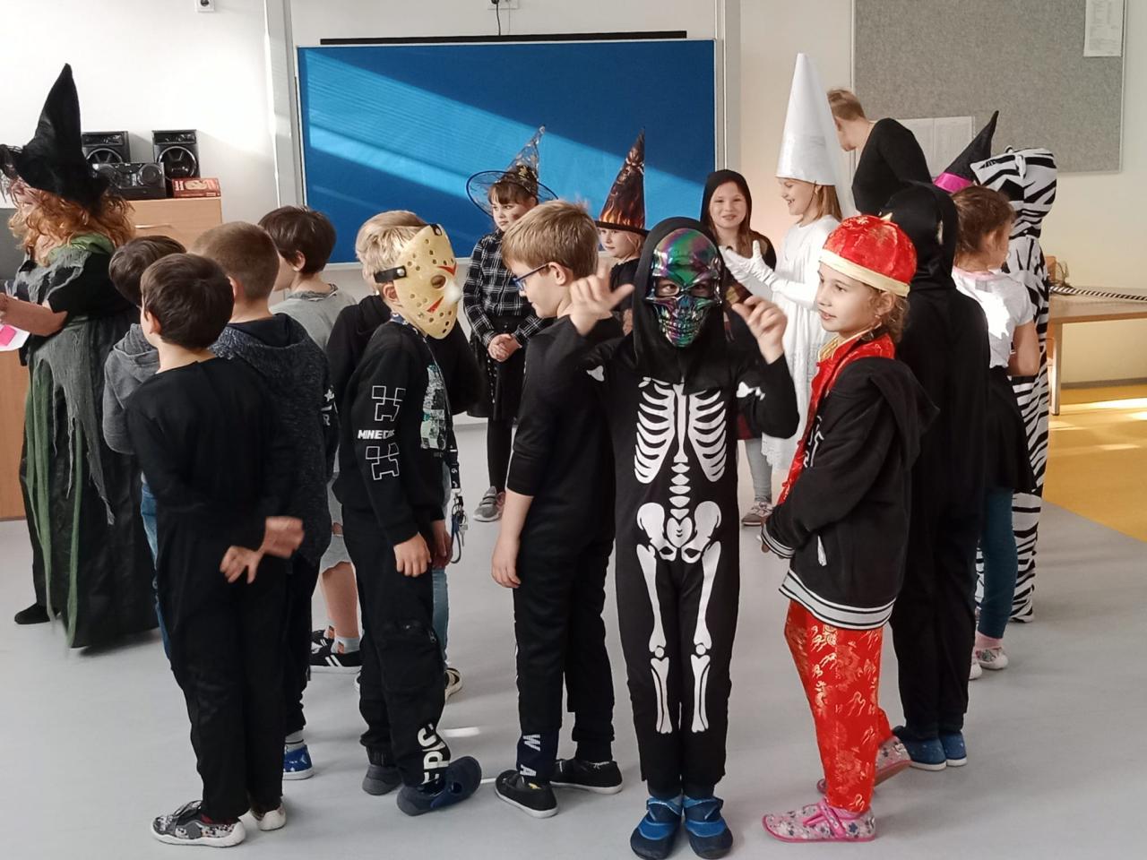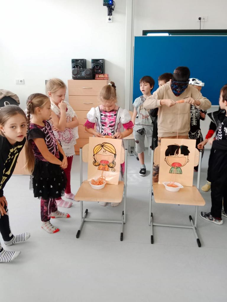 Ve čtvrtek 3. 11. 2022 se děti z celé družiny a klubu proměnily v malé čarodějnice, kostlivce, duchy, strašidýlka, superhrdiny a jiné bytosti. Zahrály si několik her, soutěžily a hádaly předměty v „kouzelné dýni“. Na závěr si zatancovaly a domů si odnesly i sladkou odměnu.