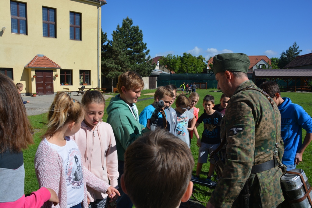a výstroj vojáků, kteří stáli u konce druhé světové války. Žáci byli z této návštěvy nadšení a se zájmem poslouchali veškeré informace.