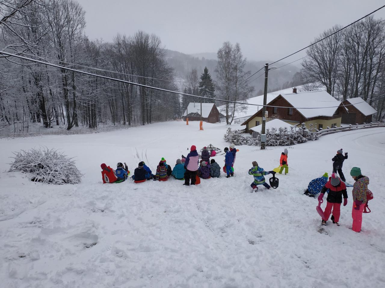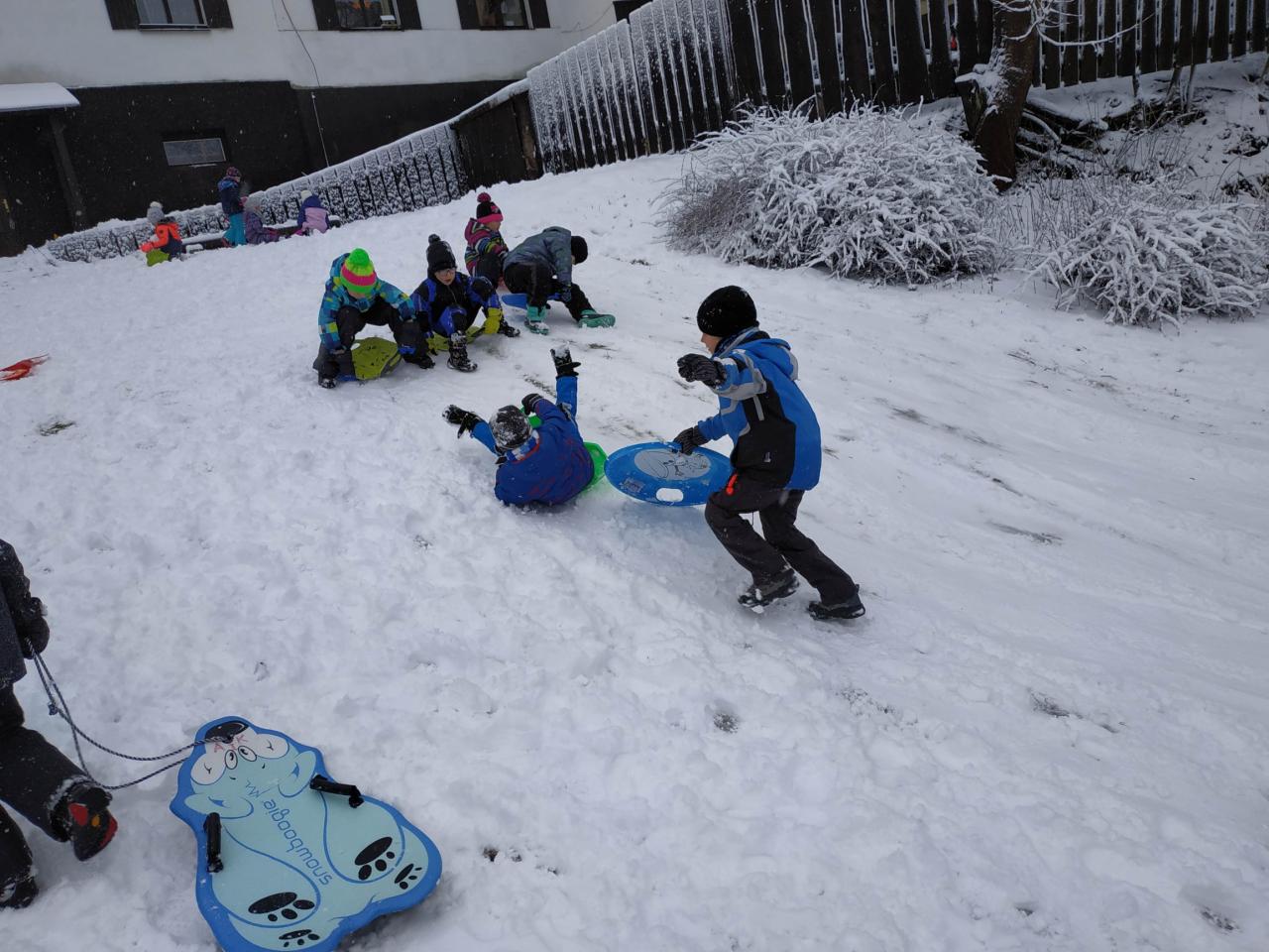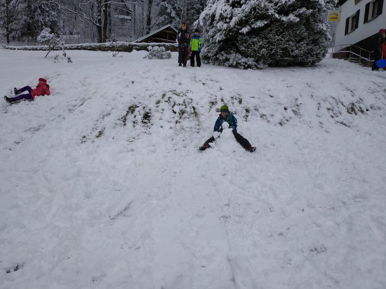 Po probuzení jsme se všichni zaradovali... sněží!!! Náš rituál byl vyslyšen. Dopoledne jsme věnovali radovánkám na sněhu a odpoledne se chystáme vybalit lyže. Všichni se těšíme :-)