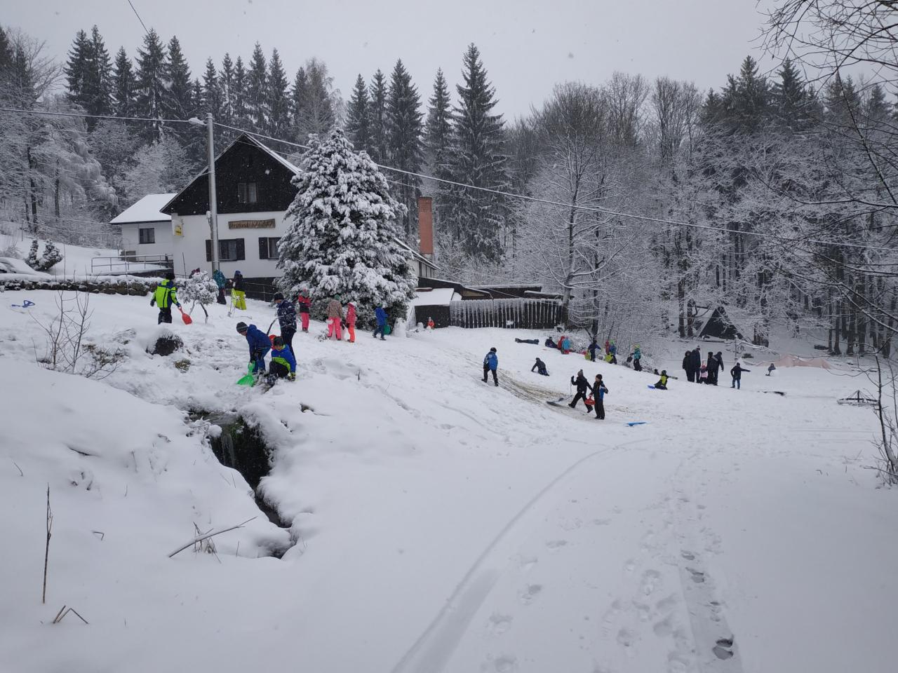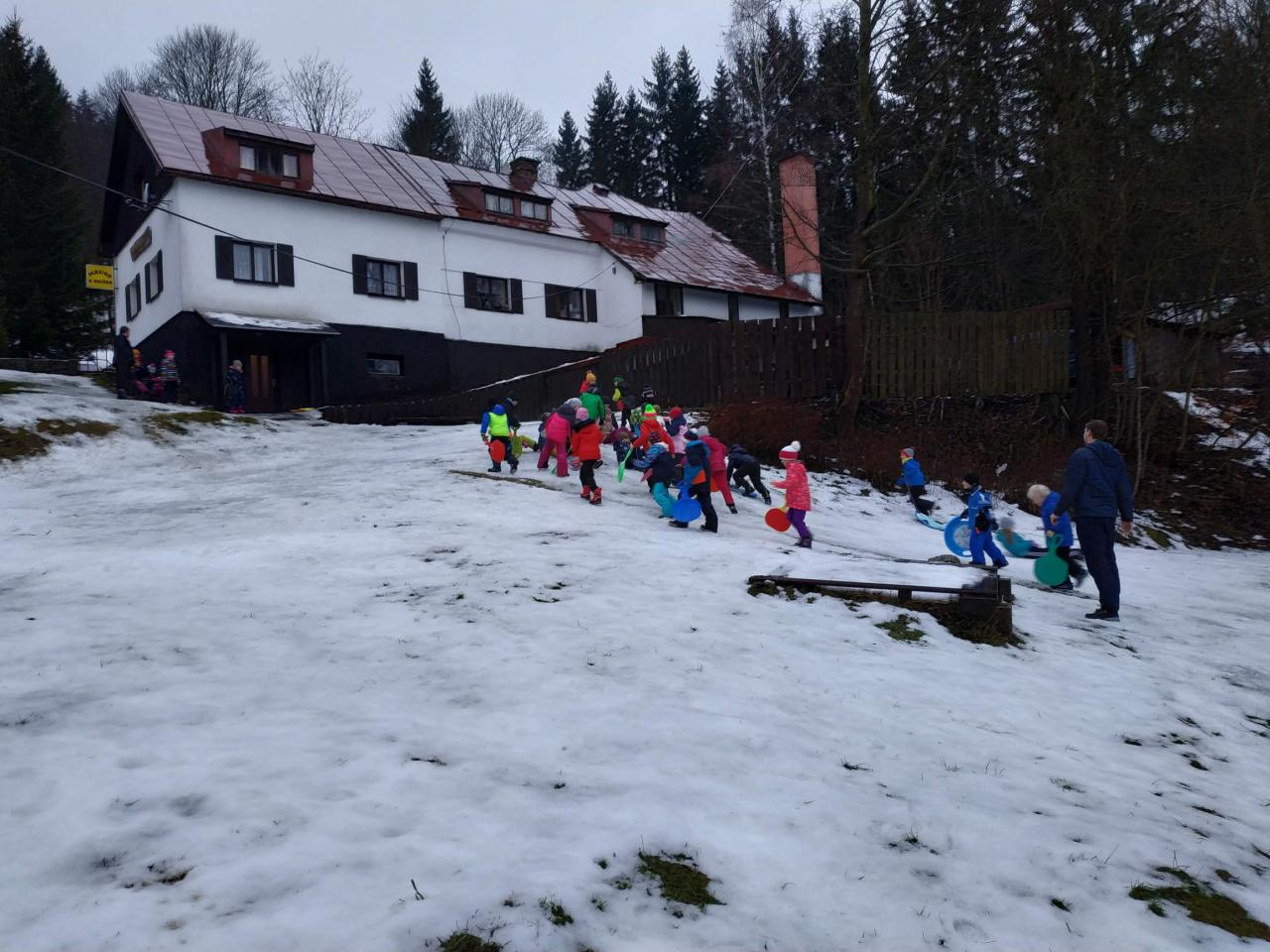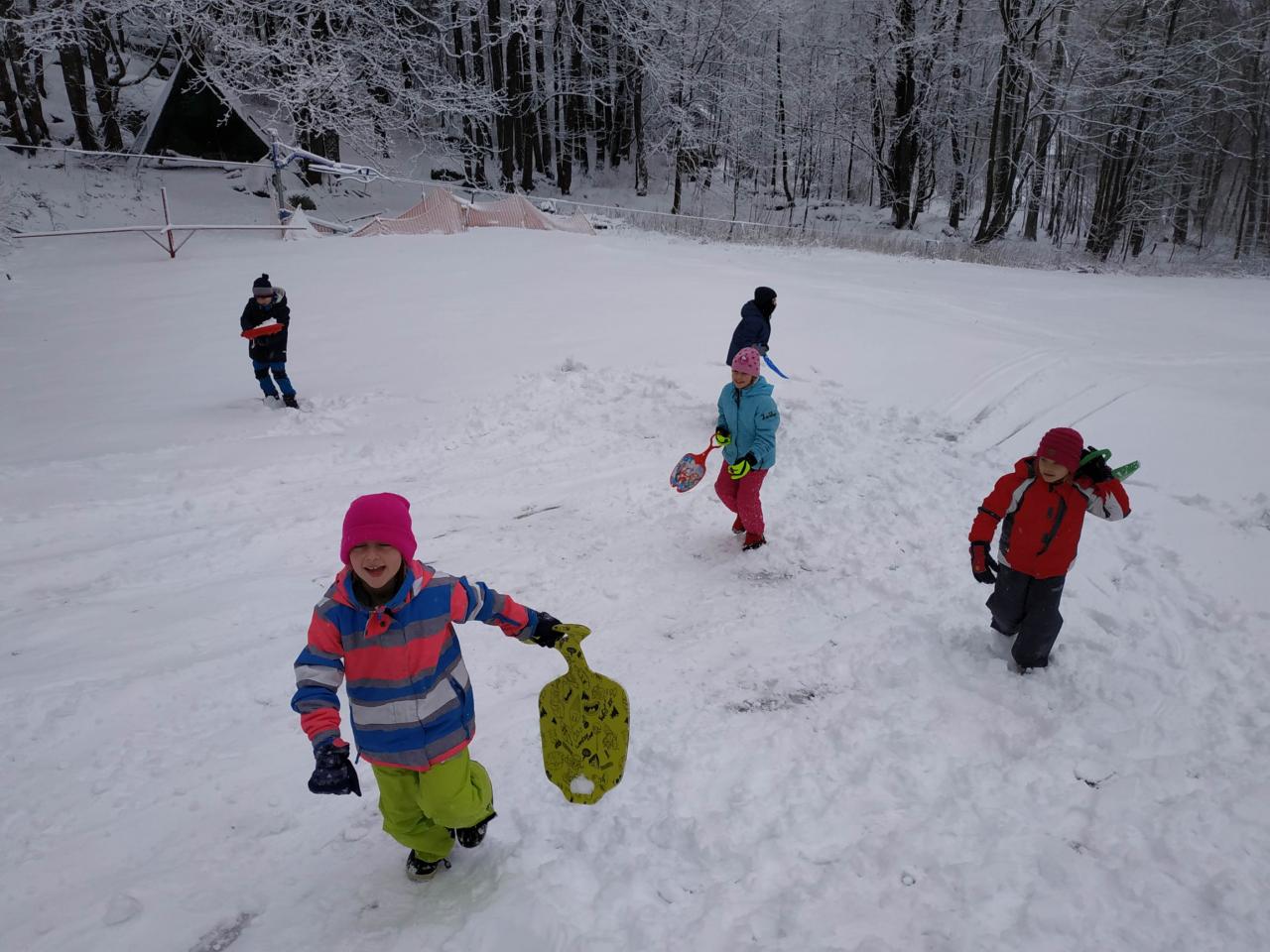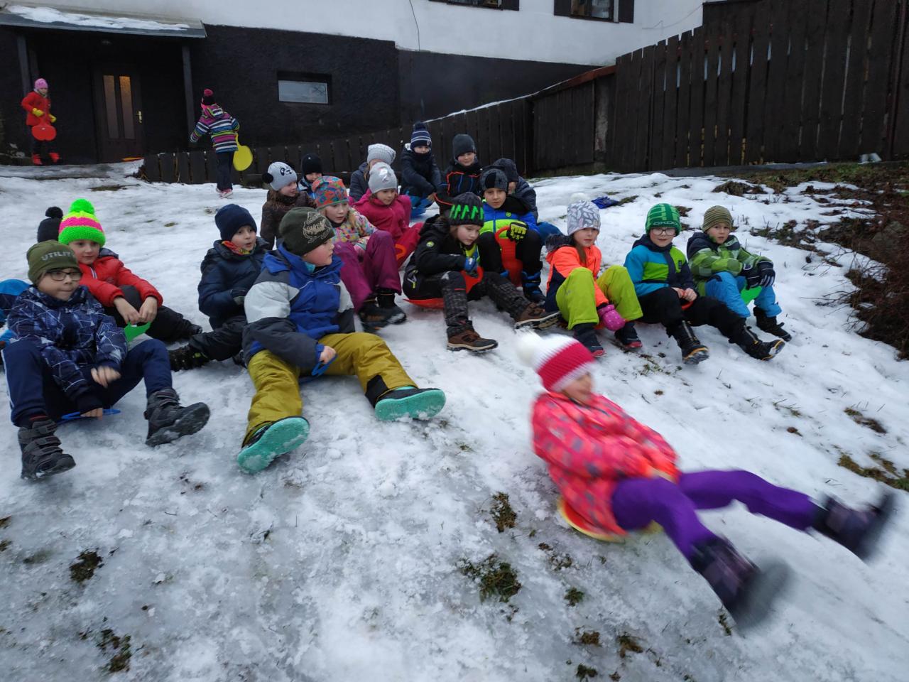 Po probuzení jsme se všichni zaradovali... sněží!!! Náš rituál byl vyslyšen. Dopoledne jsme věnovali radovánkám na sněhu a odpoledne se chystáme vybalit lyže. Všichni se těšíme :-)