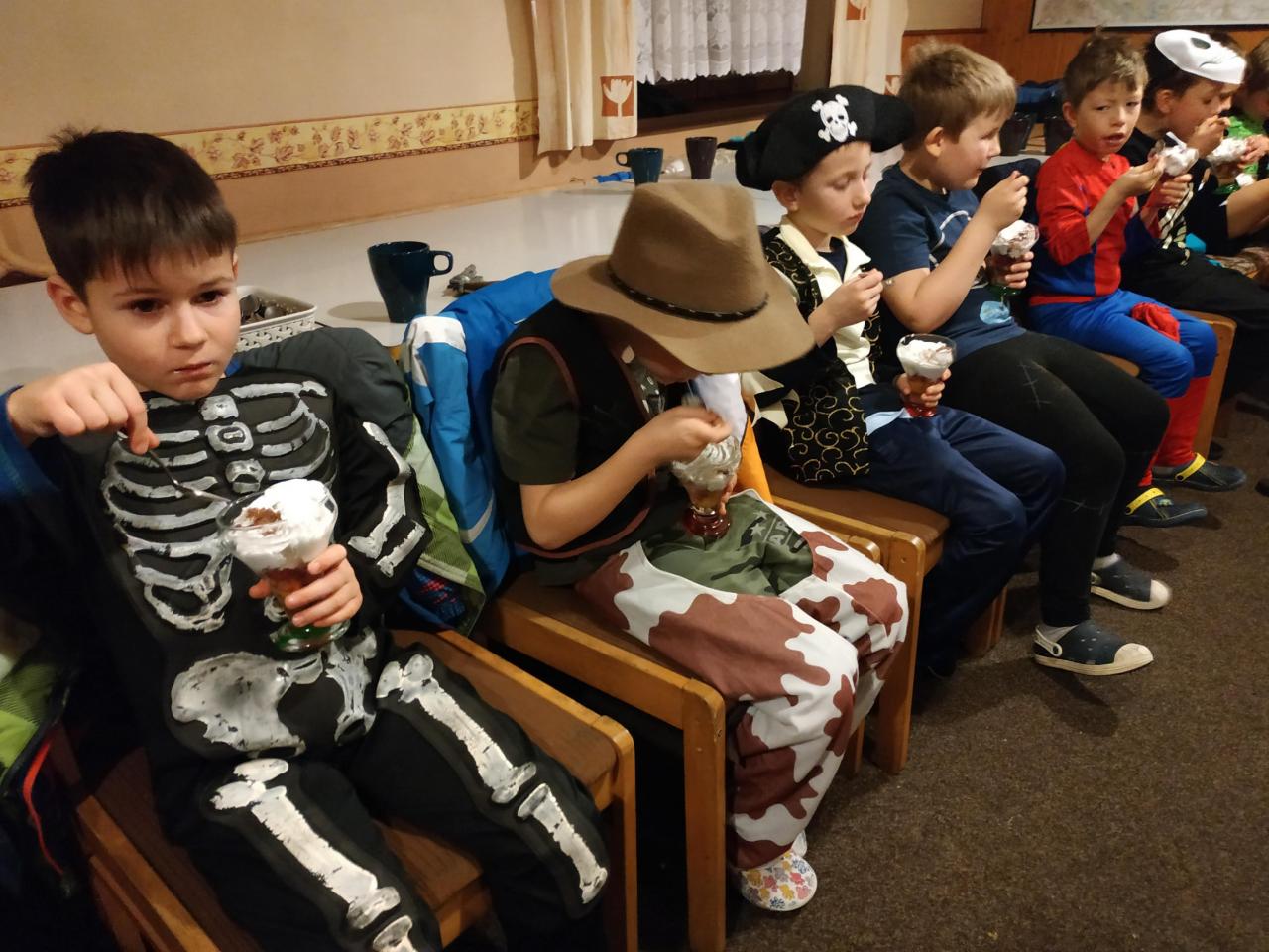 Dnes jsme opět celý den lyžovali. Dopoledne jsme měli závody ve sjezdu. Všichni jsme se moc snažili zajet co nejlepší čas. Odpoledne jsme ještě pilovali styl, do poslední chvíle jsme tak využili příznivé sněhové podmínky. Večer jsme si užili karneval s dráčkem a čarodějnicí, na který jsme se moc těšili. Zítra nás čeká balení a návrat domů. Předpokládaný příjezd ke škole je v 15:00.