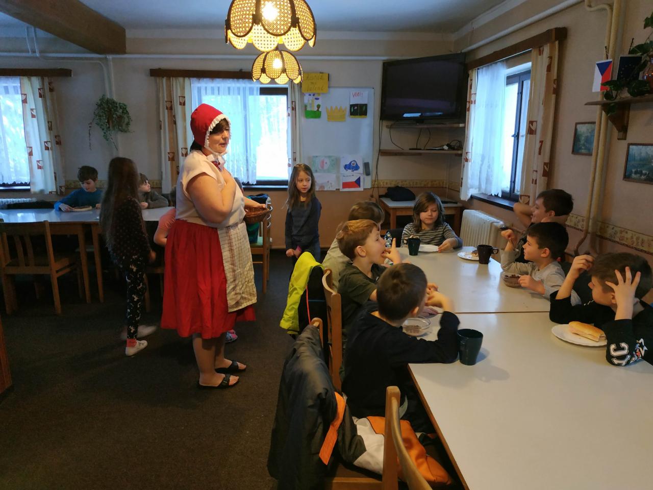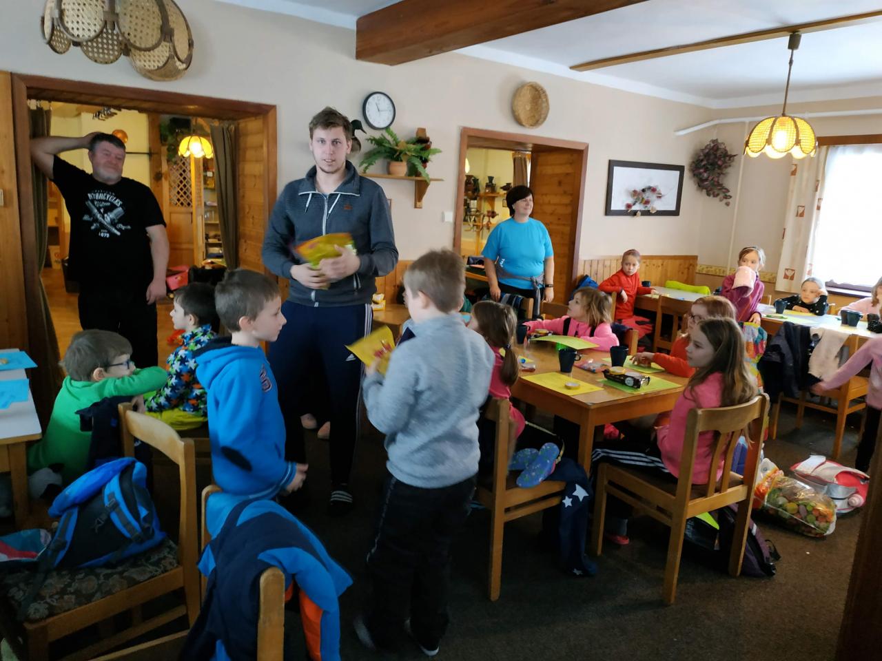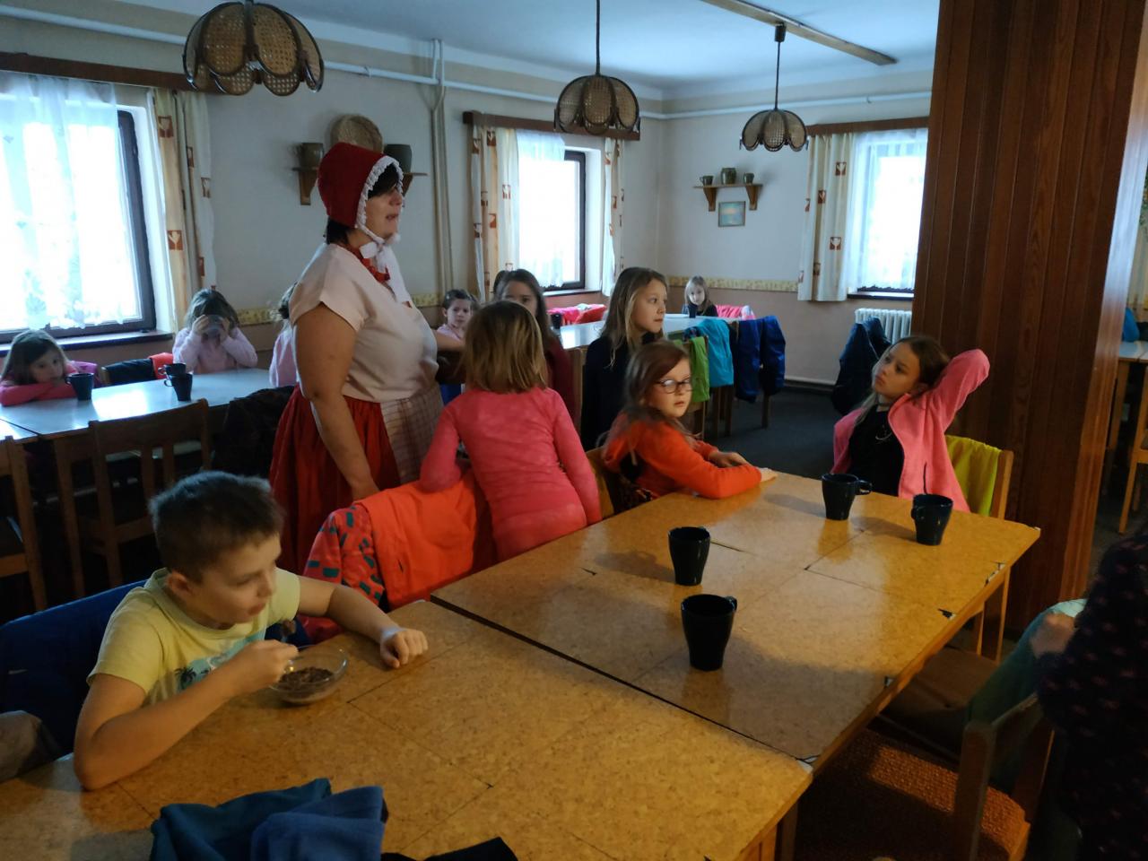 Ráno nás u snídaně čekalo překvapení - čerti a Červená Karkulka. Po snídani nastal čas velkého balení. Před obědem bylo vše sbaleno, a tak mohlo dojít k vyhlašování soutěží a hodnocení celého pobytu. Žáci 1., 2. a 3. třídy byli skvělí. Vše zvládli bravurně a slovíčka "to nejde" už ke konci pobytu skoro vůbec nepoužívali. Autobus nás spolehlivě dovezl ke škole, kde nás už nedočkavě očekávali rodiče. Už se moc těšíme na léto a další aktivity na škole v přírodě.