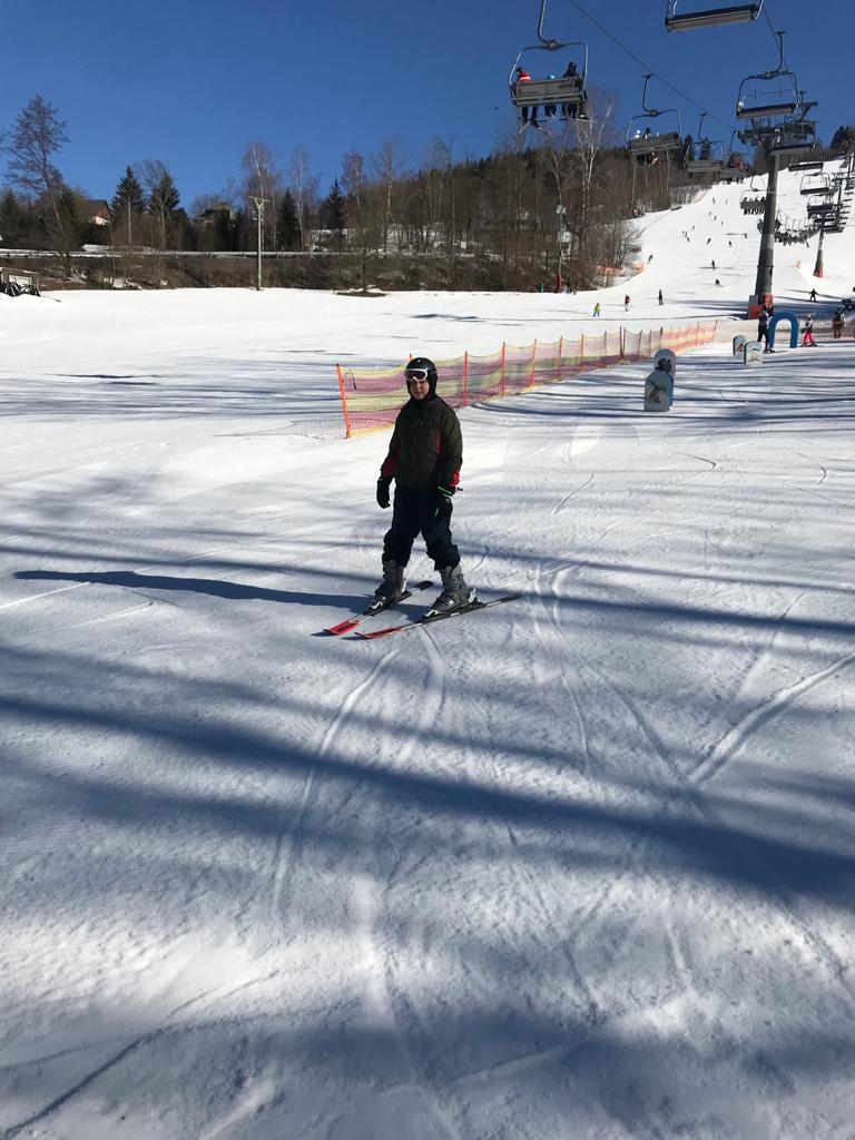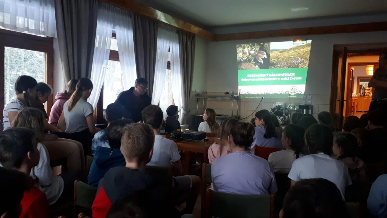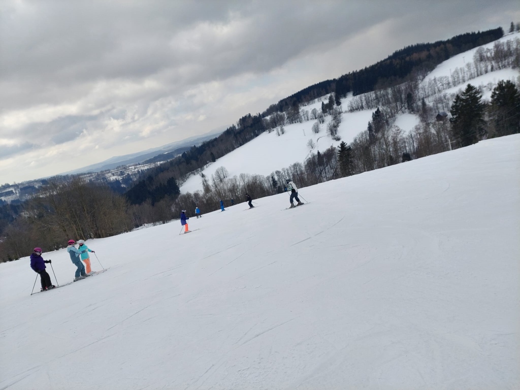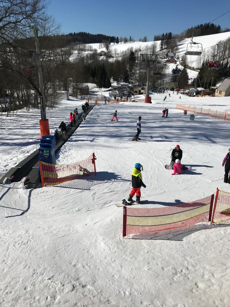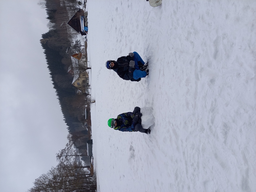Dnes opět na lyžích a snowboardech jsme se snažili zdokonalovat naše sjezdové dovednosti. Před večeří jsme měli přednášku od zaměstnance správy KRNAPu.
