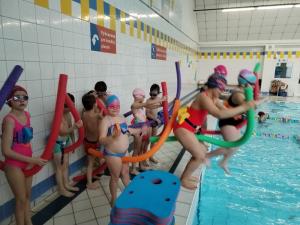 Žáci druhé a třetí třídy začali jezdit na výuku plavání do bazénu v Čelákovicích.