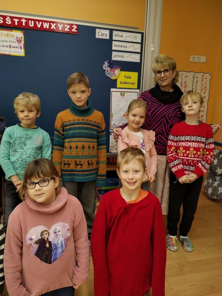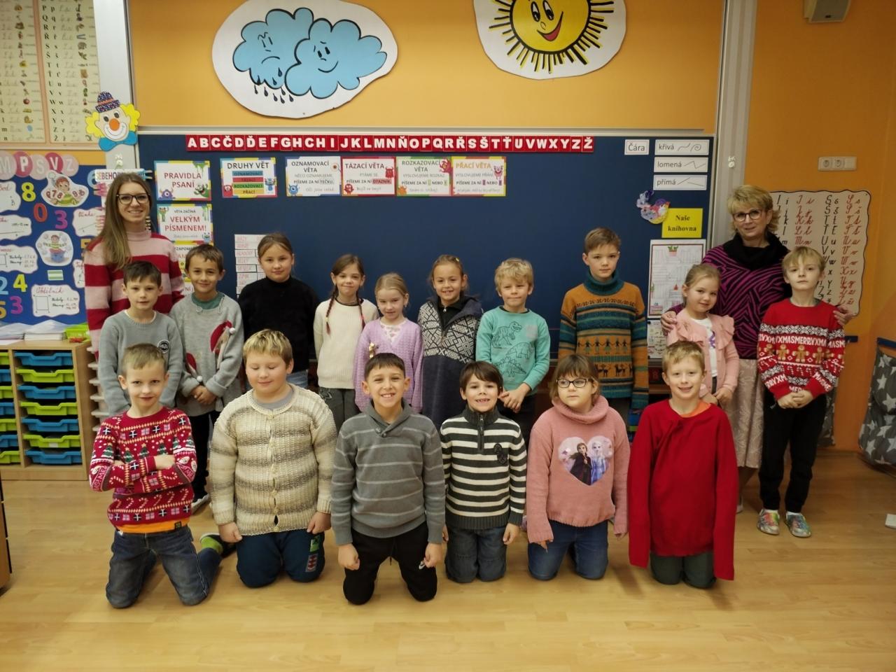 Ve středu 19.11. jsme se na chodbách školy a ve třídách potkávali v jednotném outfitu. Plnili jsme totiž listopadové téma projektu HRDÁ ŠKOLA. Tím byl SVETR. Pletené oblečení, které slouží k zahřátí horní části těla a rukou, může být buď pulovr (nasazovací přes hlavu) nebo rozepínací (kardigan). Oblíbený je také rolák. Každopádně je to stále používaný druh oblečení. Ve škole jsme se potkávali ve svetrech střídmých i pestrých barev a vzorů. Část dětí se chlubila zručností svých maminek a babiček, které stále tuto činnost ovládají a s nadšením pletou a pletou.