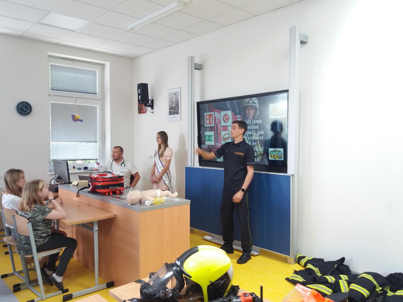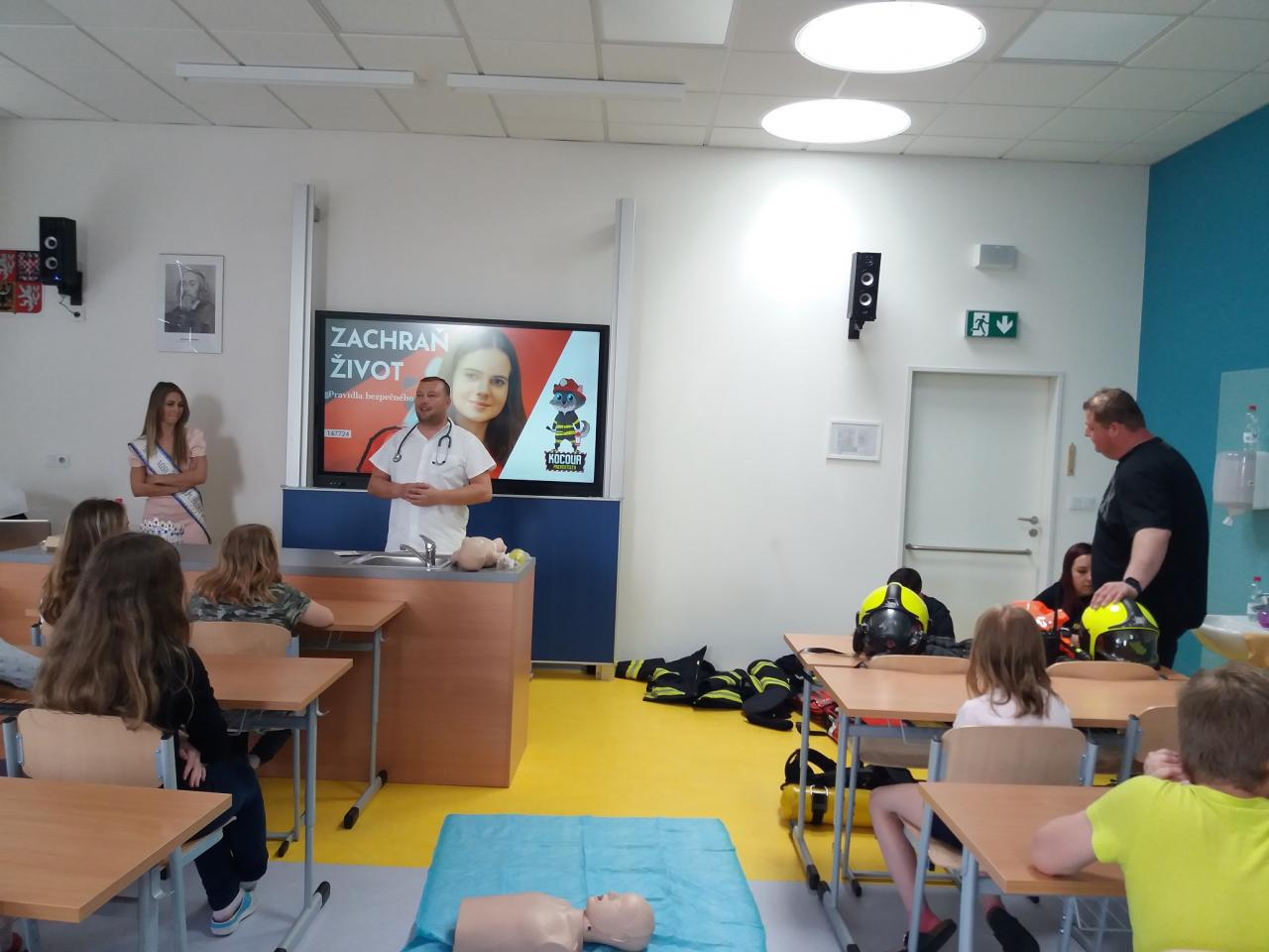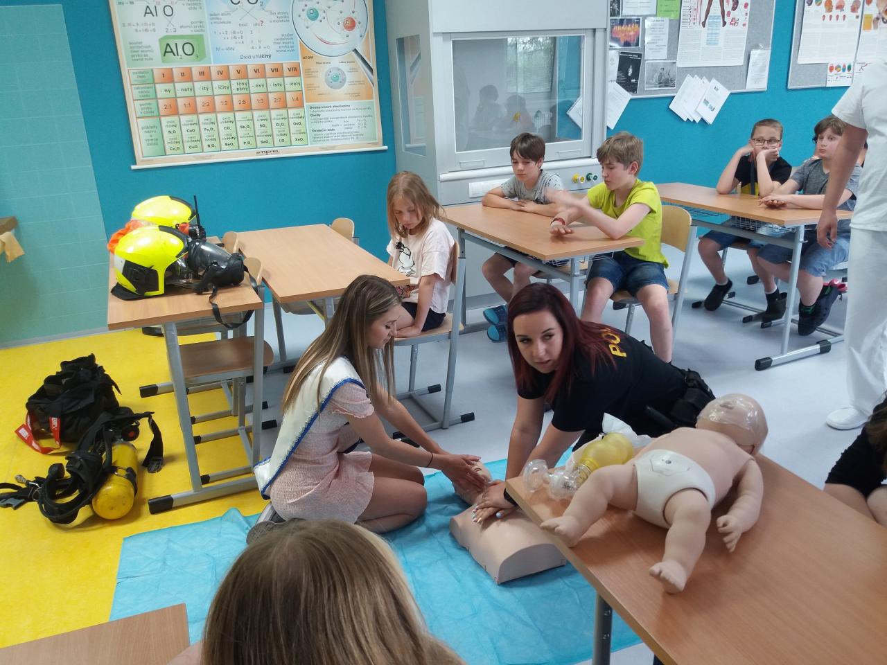 Všichni žáci z 1. stupně, absolvovali dvě části programu. Během 1. části si žáci vyzkoušeli, jak je těžké někoho resuscitovat, podívali se na videa o záchraně lidského života a zopakovali si důležitá telefonní čísla a některé zásady bezpečnosti. Ve druhá části si žáci vyzkoušeli opuštění budovy při simulovaném požáru.