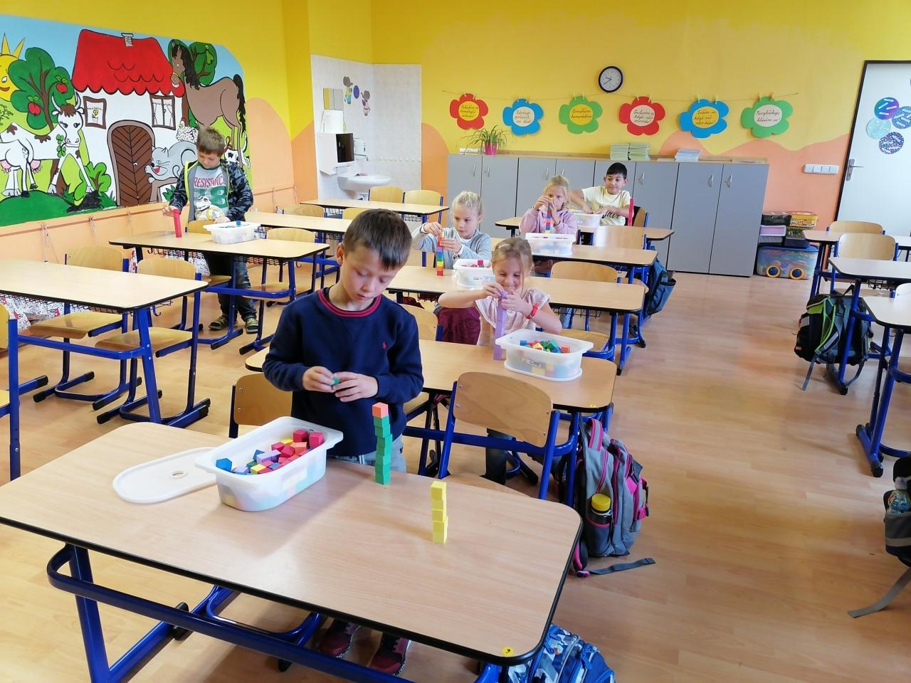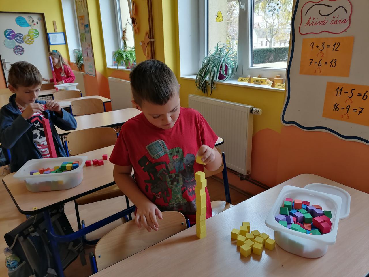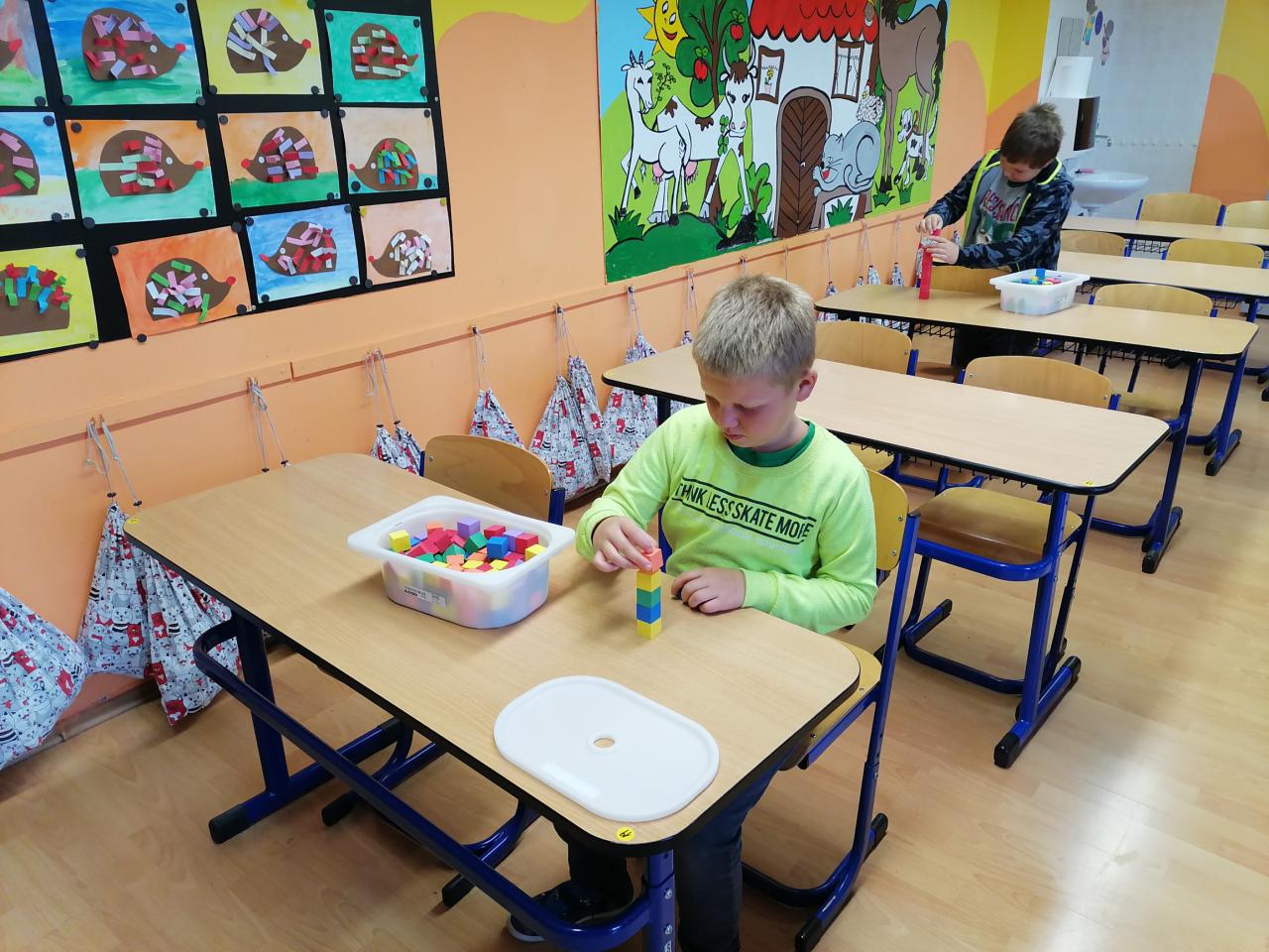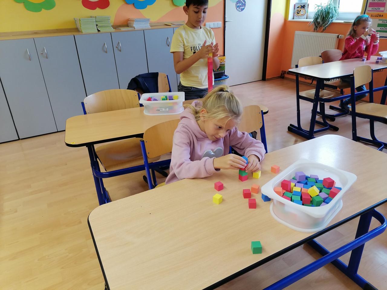 O matematice se z nás stali stavitelé. Z krychliček jsme postavili různé stavby. Trénovali jsme naši představivost, fantazii, přesnost a zručnost.