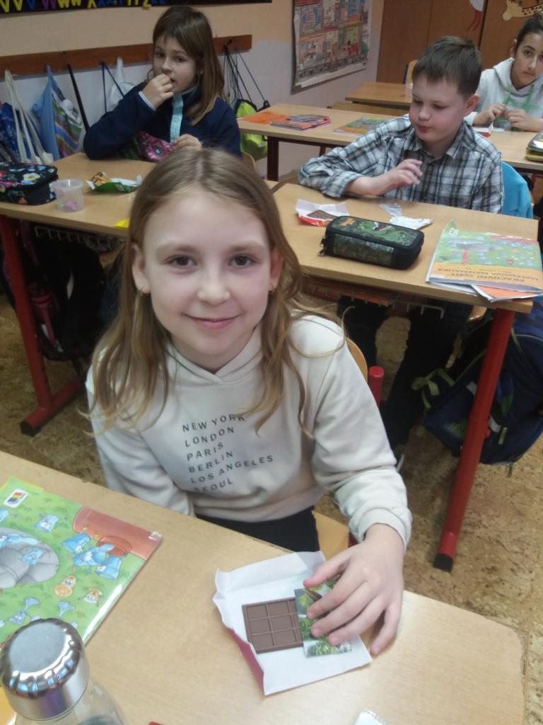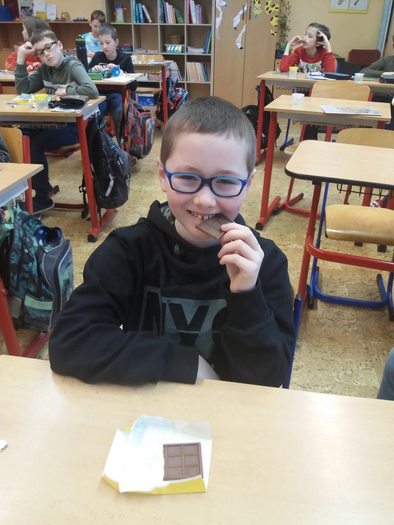 Ve středu 25.1.2023 jsme si zpestřili hodinu Ma. Učili jsme se zlomky a na pomoc jsme si vzali čokoládu. Nejprve jsme si na ní ukazovali polovinu, třetinu, čtvrtinu atd., potom jsme si na interaktivní tabuli vyzkoušeli několik her, díky kterým jsme bez problémů zlomky pochopili.