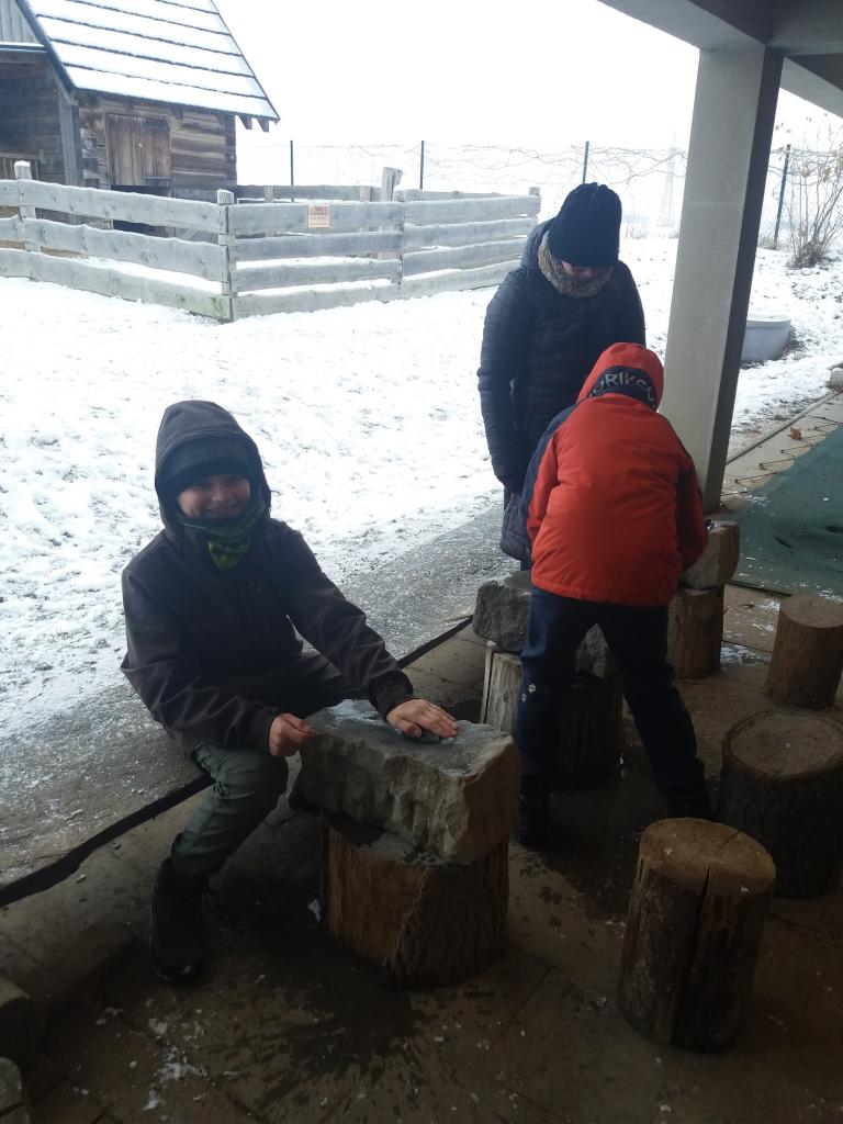 Pravěká vesnice se všem moc líbila. Díky mrazivému počasí a sněhu jsme si mohli aspoň trochu představit, jak se v pravěku lidem žilo, a o to raději jsme se vrátili do současnosti a do teplých domovů.