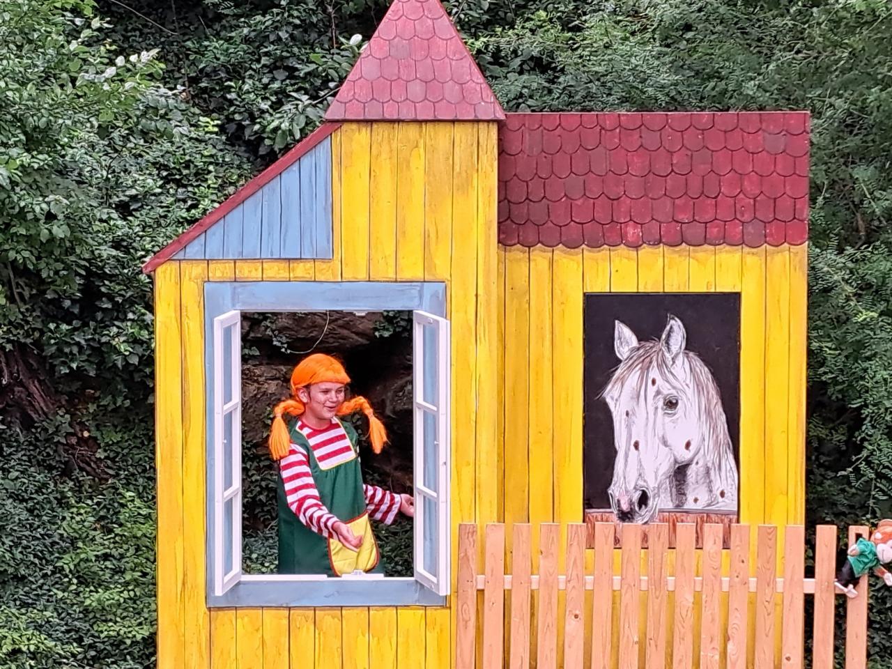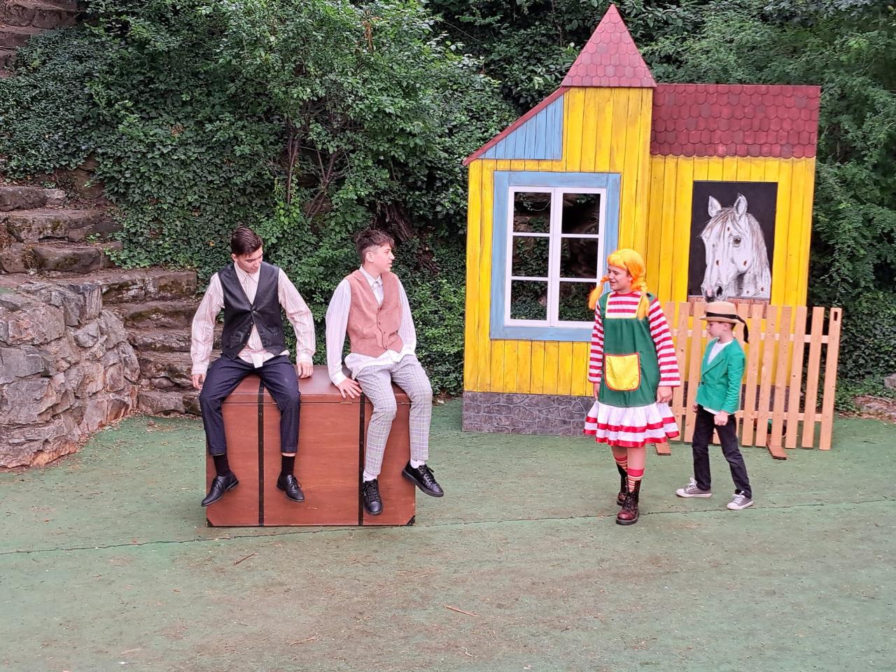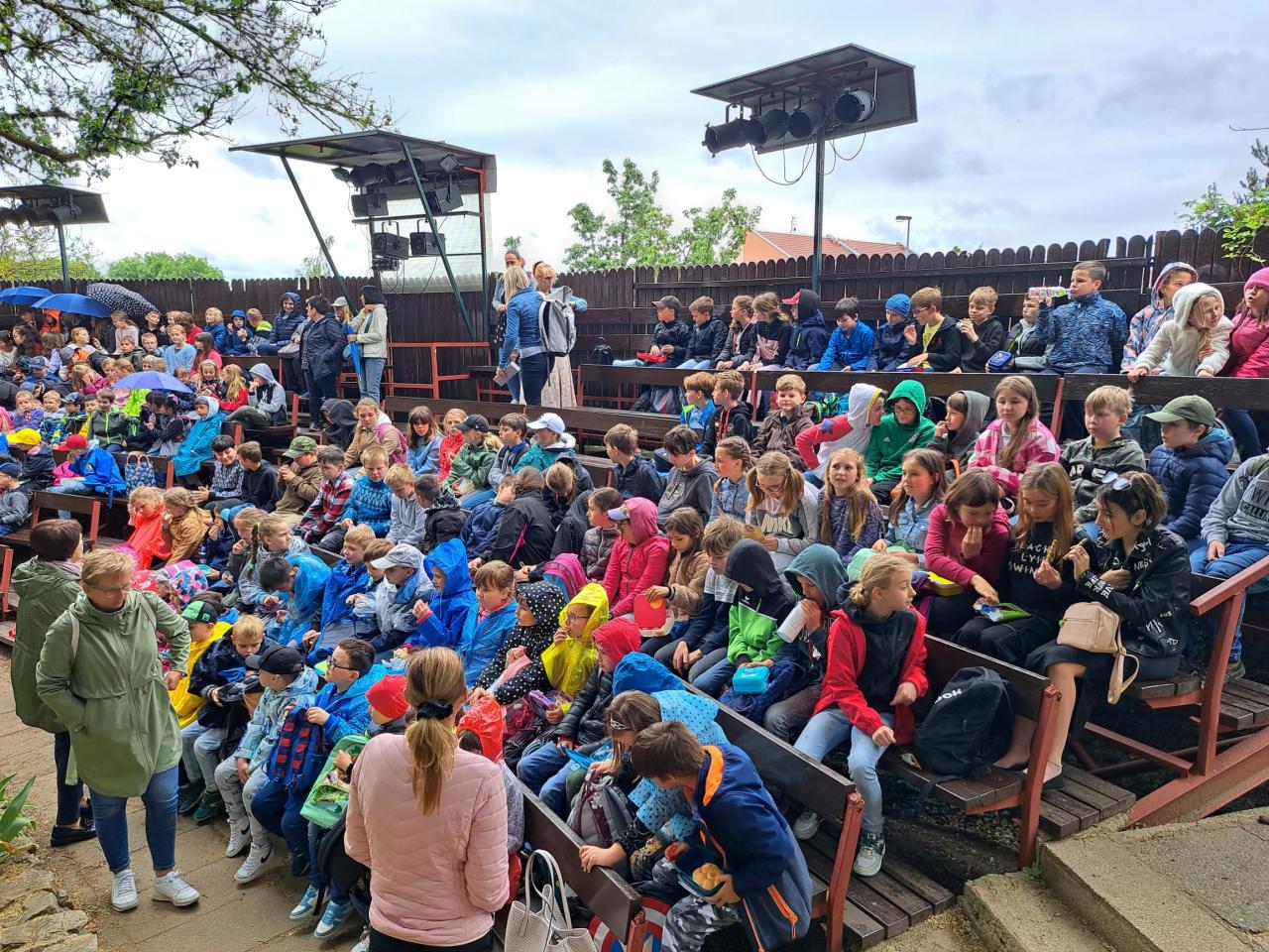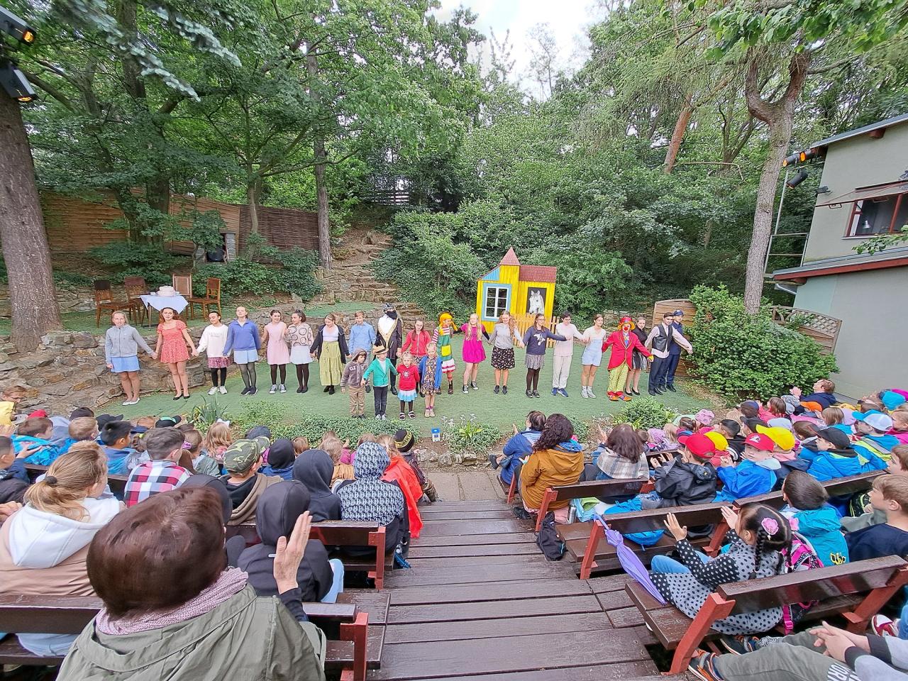 Ve středu 22.5.2024 se celý 1. stupeň naší školy vydal do Horních Počernic do Divadla v přírodě. Přijeli jsme se podívat na veselý příběh o malé holce, která se jmenovala Pipi dlouhá punčocha, která žila sama ve vile Villekule pouze s opičkou - panem Nilsonem a koněm Alfrédem. Pipi zažívala různá dobrodružství a vyprávěla o nich.