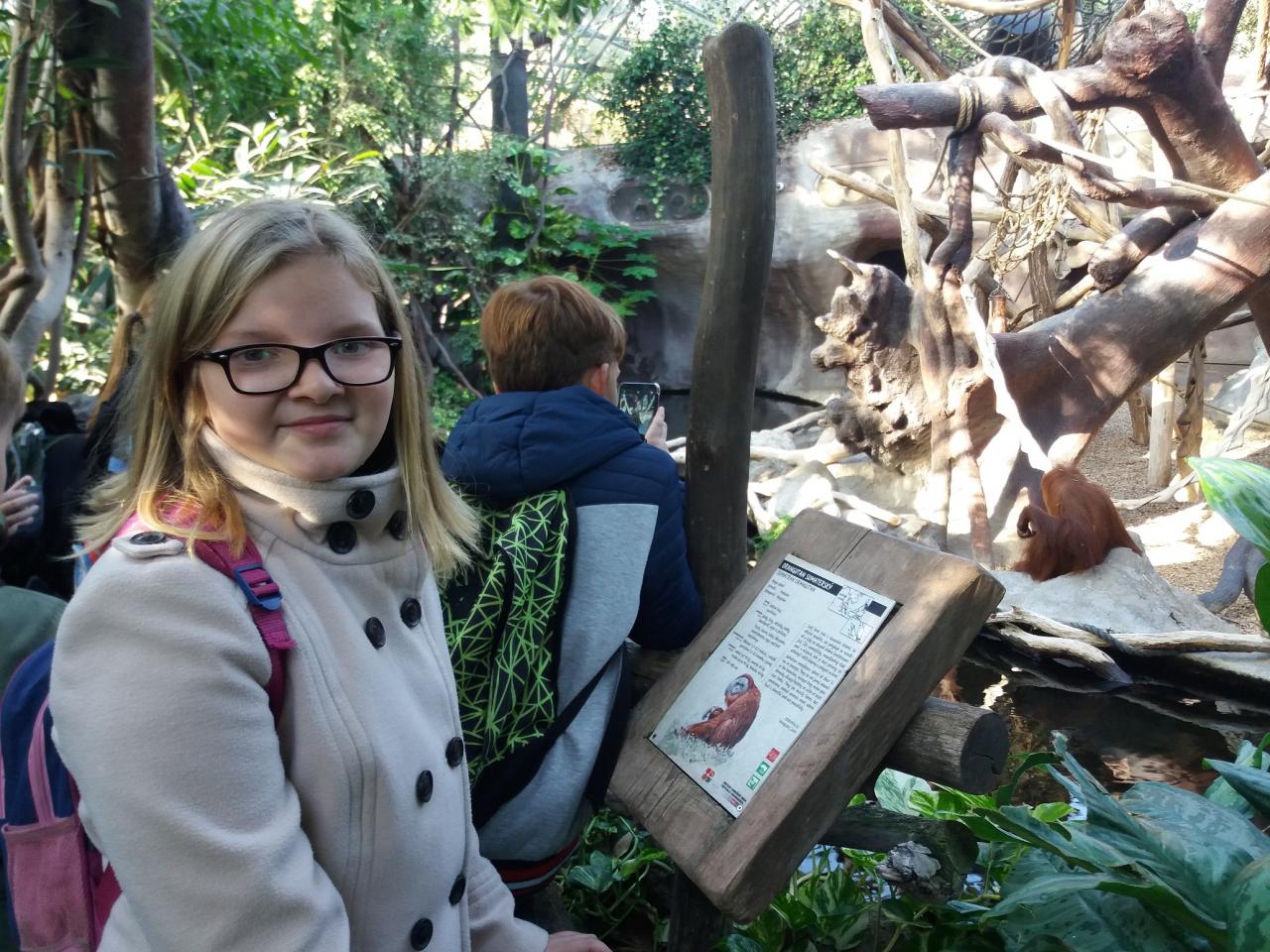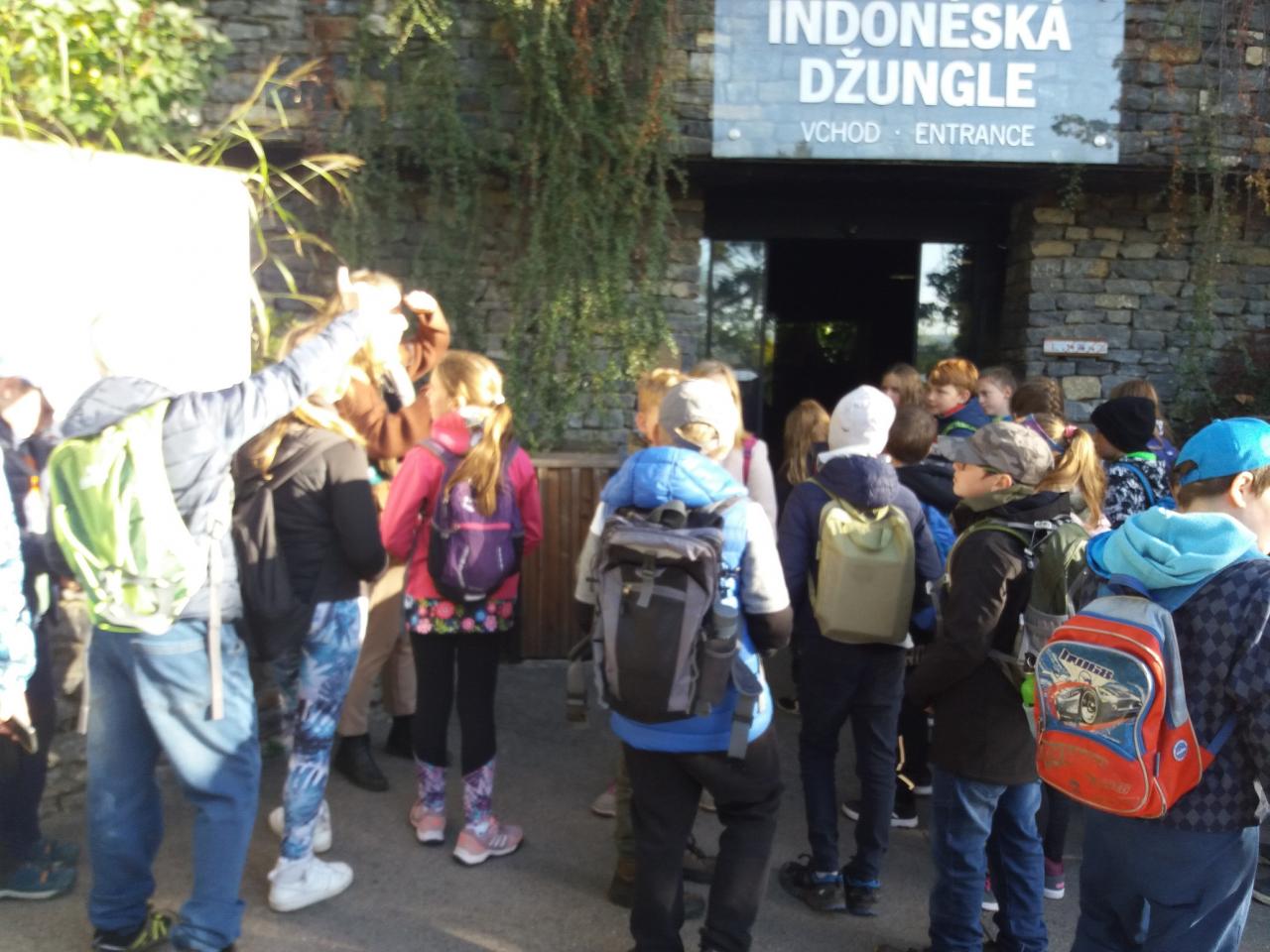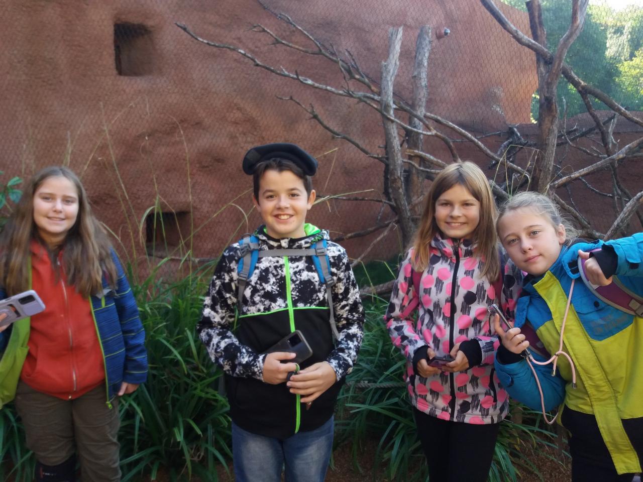 Během celého dopoledne jsme se seznámili se spoustou zástupců primátů. Navštívili jsme ostrov lemurů a zjistili, odkud pochází jejich jméno. Prošli jsme se tropickým lesem v Indonéské džunglí a zahlédli jsme varany, orangutany a jiná zvířata z pralesů jihovýchodní Asie. Na závěr jsme se přesunuli do nového pavilonu - Reservace DJA, který byl posaven podle konkrétní oblasti v Kamerunu a je domovem rodinné skupiny goril nížinných. Děti si vyzkoušeli i kamerunskou školu a mohli porovnat rozdíly s naší školou. Během celého dne jsme viděli i spoustu dalších živočichů a samozřejmě jsme nevynechali ani slony a žirafy.