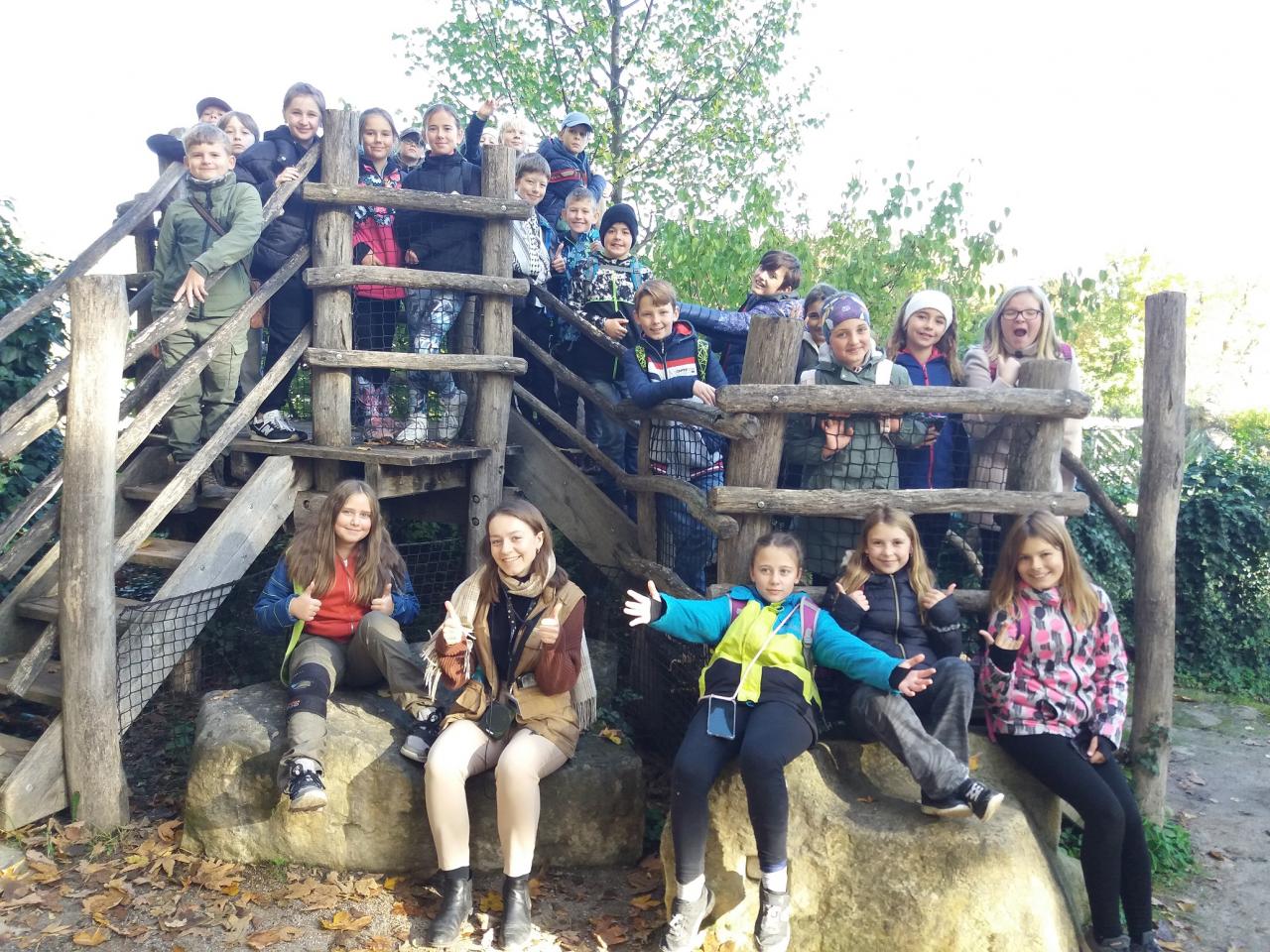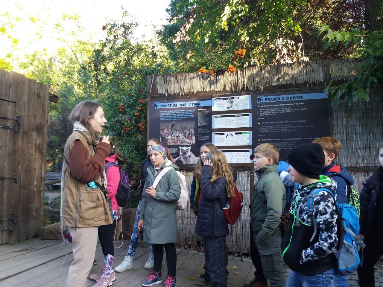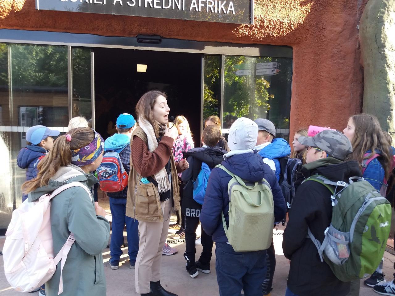 Během celého dopoledne jsme se seznámili se spoustou zástupců primátů. Navštívili jsme ostrov lemurů a zjistili, odkud pochází jejich jméno. Prošli jsme se tropickým lesem v Indonéské džunglí a zahlédli jsme varany, orangutany a jiná zvířata z pralesů jihovýchodní Asie. Na závěr jsme se přesunuli do nového pavilonu - Reservace DJA, který byl posaven podle konkrétní oblasti v Kamerunu a je domovem rodinné skupiny goril nížinných. Děti si vyzkoušeli i kamerunskou školu a mohli porovnat rozdíly s naší školou. Během celého dne jsme viděli i spoustu dalších živočichů a samozřejmě jsme nevynechali ani slony a žirafy.
