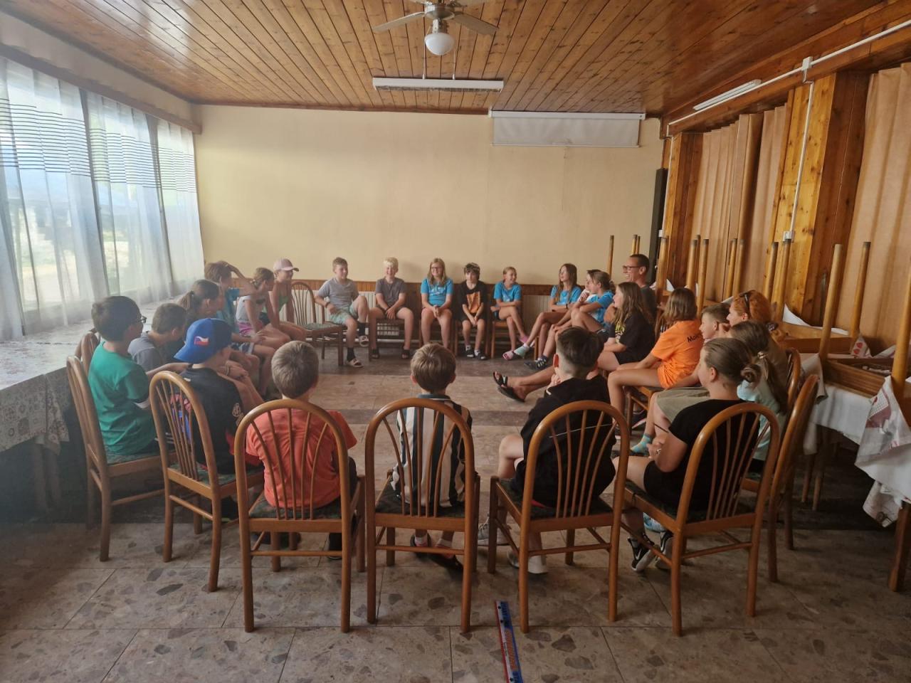 Zdravíme vás z adaptační kurzu. Dnes jsme si užili koupání, sportoviště v kempu a nakonec jsme si zahráli na reportéry. Máme se krásně. Mějte se také tak.