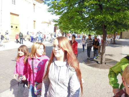 do našeho hlavního města. Účelem cesty byla procházka po Královské cestě a zhlédnutí některých významných pamětihodností. Tramvají jsme dojeli až na Pražský hrad. Odtamtud jsme došli Nerudovou ulicí přes Malostranské náměstí a Karlův most až na Staroměstské náměstí. Tam jsme si prohlédli Orloj, a další památky. Poté jsme dále pokračovali Celetnou ulicí na Náměstí republiky a zpět na Masarykovo nádraží, kde naše výprava započala.