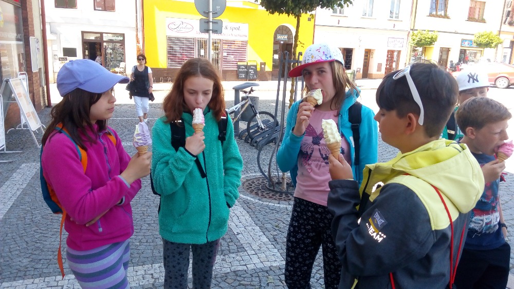 a přes Žďár nad Metují zpět do chatové osady, kde nás čekal oběd, který dětem velmi chutnal. Odpoledne jsme navštívili Muzeum papírových modelů v Polici nad Metují a ochutnali místní zmrzlinu.