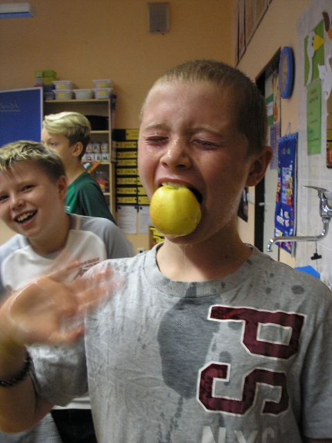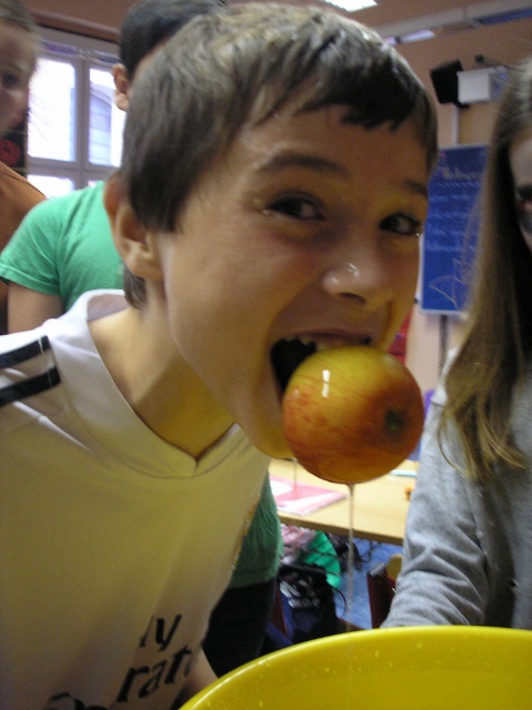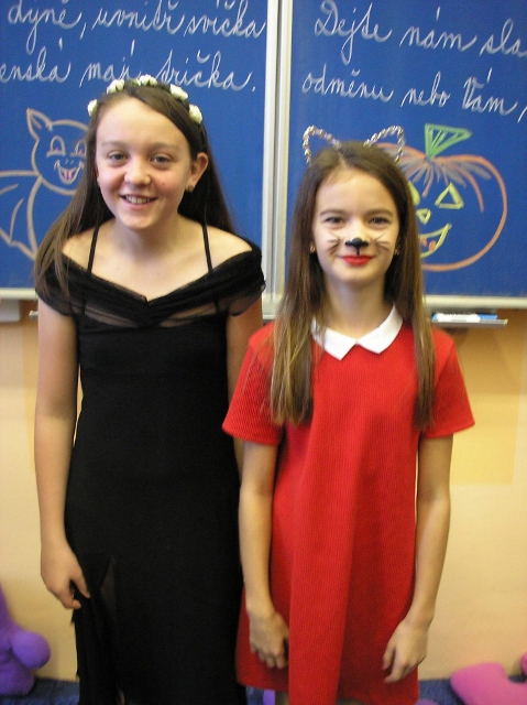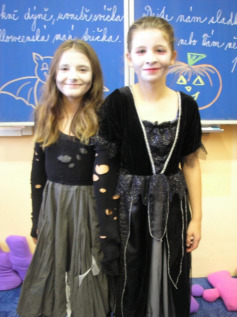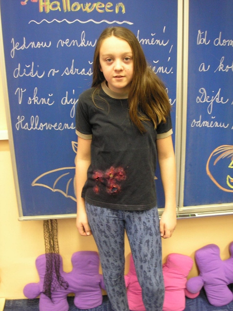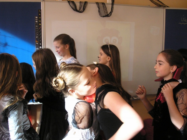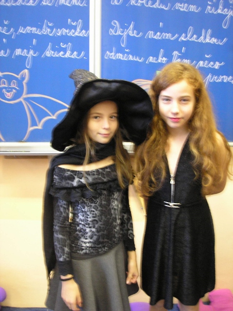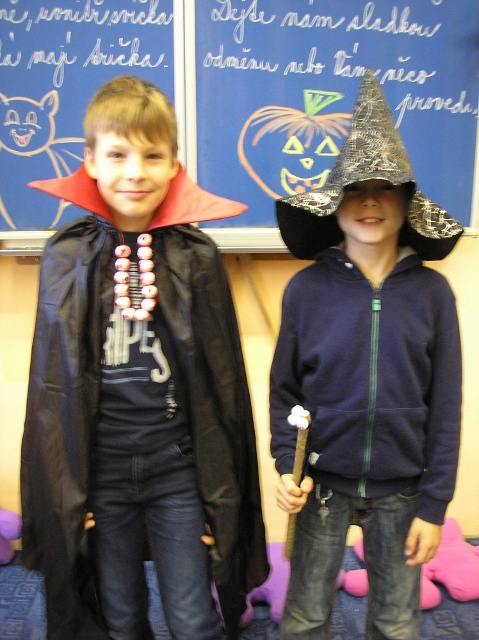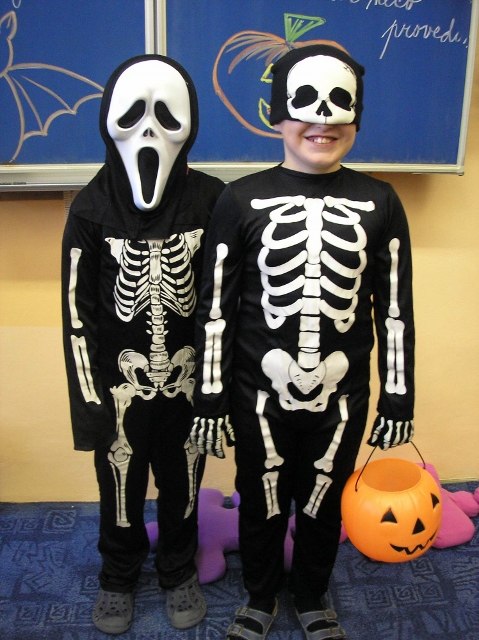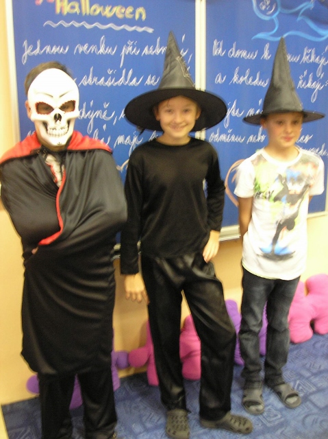 V pondělí 30. října a v úterý 31. října se v 5. třídě objevili duchové, čarodějnice, příšery, dýně a upíři – slavili jsme Halloween. Zopakovali jsme si, proč se některým dýním říká „pumpkin“ a některým „Jack-o'-lantern“, přečetli jsme si českou i anglickou básničku na Halloween a zazpívali jsme si a „zaspellovali“ písničku H-A-double L-O-W-double E- N spells Halloween. Naučili jsme se základní slovíčka k Halloweenu a vyplnili si Halloweenský pracovní list v Čj a v Ma a v angličtině jsme si zopakovali slovíčka na emoce. Vyhlásili jsme i soutěž o nejdelší slupku z jablka. Děti si vyzkoušely oloupat jablko, ten, který měl nejdelší slupku, vyhrál.(Apple Patiny). Po oba dny jsme hráli Halloweenské BINGO, zpívali další anglické Halloweenské písničky, naučili se nová anglická slovíčka a zahráli si několik her. Dětem se moc líbila hra, při které lovily jablka v míse s vodou (Bobbing for Apple). Úspěch měla i hra, při které se děti ve dvou družstvech snažily přemístit jablko spolužákovi za sebou pomocí brady (Apple Pass).