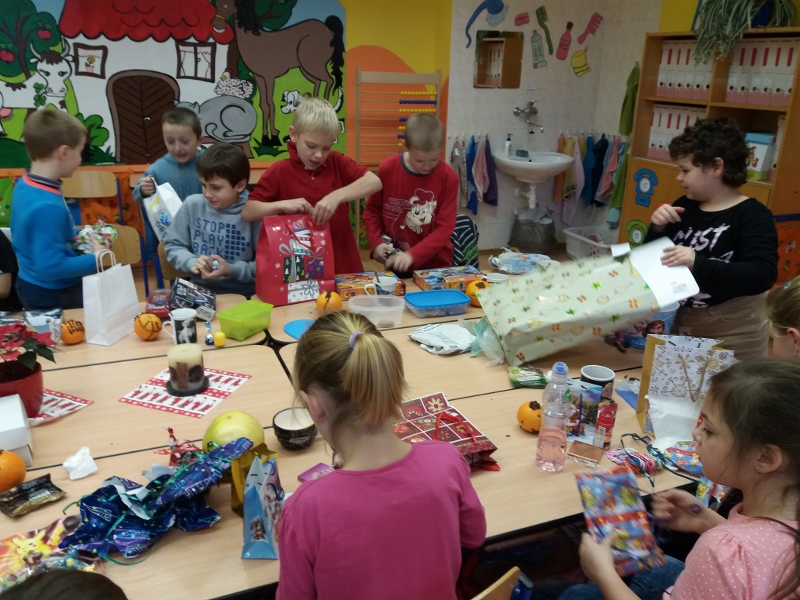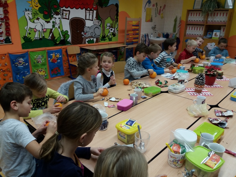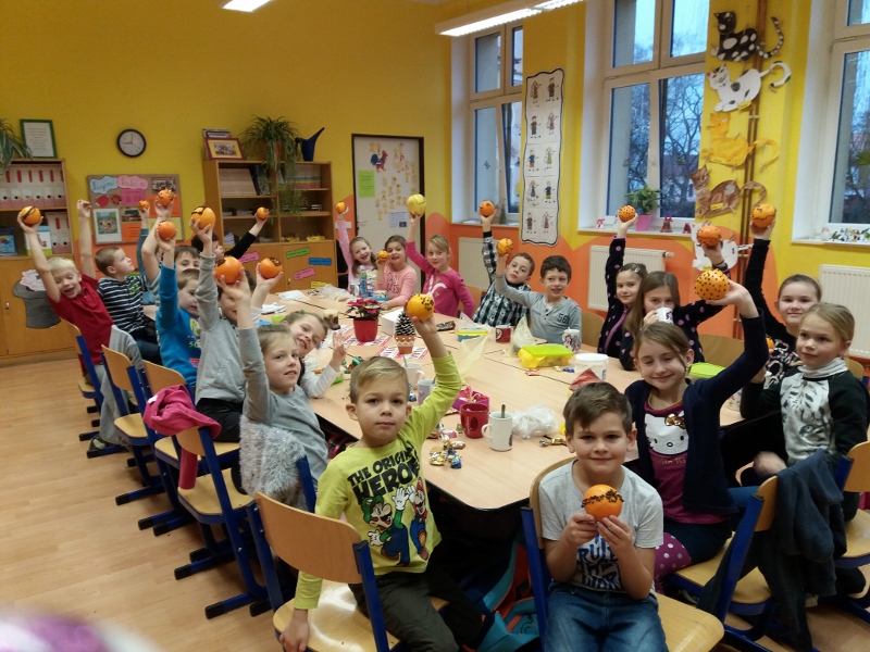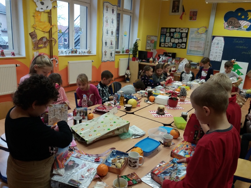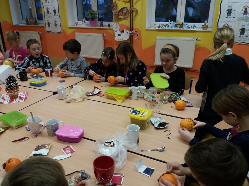 na rozdávání dárečků od svých kamarádů si krátili výrobou voňavého pomeranče, pitím čaje, ochutnávkou cukroví, zpíváním koled a hraním na flétničky. Stejně jako v loňském roce si ještě vyzkoušeli některé vánoční zvyky – krájení jablíčka a pouštění lodiček. Radost z celého dne můžete vidět ve fotogalerii na portálu www.semice2.rajce.net.